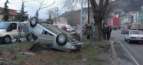 Edinilen bilgiye göre, Çömlekçi Mahallesi'nde Oğuzhan B. (20) idaresindeki 34 SM 263 plakalı özel otomobil, yoldan karşıya geçmekte olan yayaya çarpmamak için manevra yaptığı sırada yolun kaygan olması nedeniyle kontrolden çıkıp takla attı ve yol ortasındaki refüje çıktı. Otomobil sürücüsü Oğuzhan B. kazayı hafif sıyrıklarla atlatırken, ters dönen otomobil polis ve çevredeki vatandaşların yardımıyla düzeltildi. Kazayla ilgili soruşturma sürüyor.