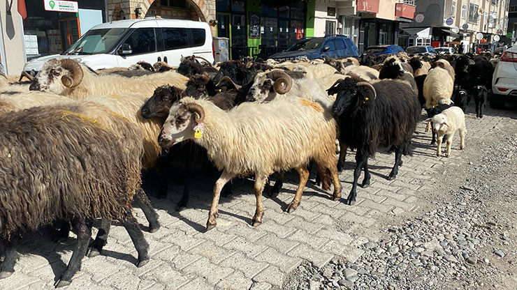 Cadde ve sokaklardan geçen koyunları gören vatandaşlar ise bu ilginç ve sıra dışı anı cep telefonları ile görüntüledi.