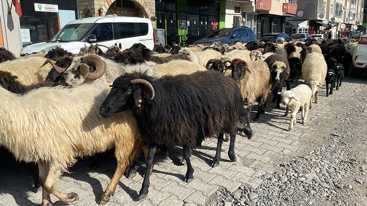 Cadde ve sokaklar koyun sürüsüyle doldu. Yayla göçünün erken başladığı D. Karadeniz'de, 2 ay sürecek olan yolculuk serüveni renkli görüntülere sahne oldu.