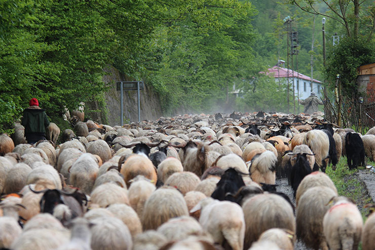 Doğu Karadeniz Bölgesi’nde hava sıcaklıklarının artması ve yüksek kesimlerde karların erimesiyle yaylalara göç başladı. Her yıl Ekim-Kasım gibi yayladan dönüşe geçen ve bahar aylarının gelmesiyle yaylara tekrar göç eden besicilerin asırlardır devam eden geleneği bu yıl da sürdü. Zorlu mesaide kilometrelerce yol kat eden ve hayvanlarının başından bir an olsun ayrılmayan besiciler yüzlerce koyun sürüsü ile karayolu ve dağlık alanlardan geçiyor. Coğrafi şartlar nedeniyle çoban köpekleri eşliğinde süren göç yolculuğu sürücüler tarafından da ilgiyle takip ediliyor. Yoldan geçen araçların ilerleyişini zorlaştıran sürüdeki koyunlar ise sürücüler tarafından cep telefonu ile görüntüleniyor.