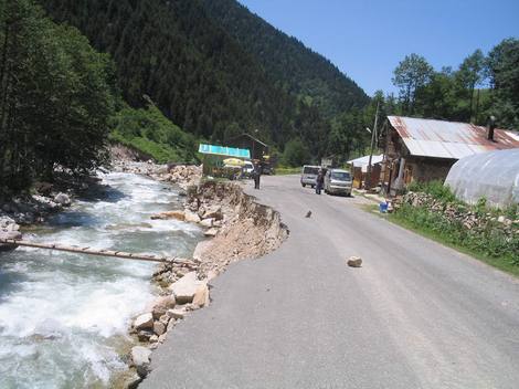 İkizdere ilçesinin Çamlık Köyünde, Karayolunun dere sularıyla tahrip olması can ve mal güvenliğini tehdit edecek boyuta ulaştı.