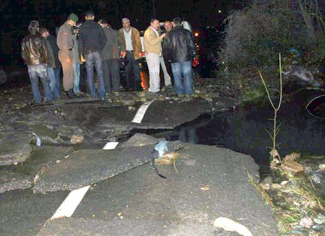Borudan fışkıran su ve etrafa saçılan taş parçaları sebebiyle karayolu bir süre trafiğe kapandı.