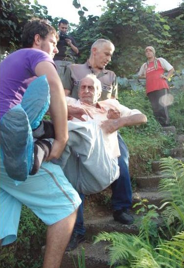 Araba yolu olmadığından 73 yaşındaki diyaliz hastası Ahmet Akgül'ü hastaneye götürmek için kendi bildikleri yöntemi kullanan Akgül ailesi, yetkililerden yol durumunun çözülmesini istedi. Haftada üç kez diyaliz makinesine giren Ahmet Akgül, ailesi ve komşularının yardımıyla 250 metrelik patika yolda taşınarak arabaya bindiriliyor.