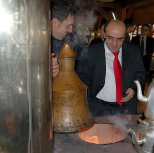 Ardından da bal ve tereyağı dolu tabaktan ayaküstü lokmaları bir bir götüren Emniyet Müdürü Şammaz Demirtaş, yüzünde patlayan flaş ve etrafındakilerin gülüşlerine aldırmadan yemeğine devam etti. Rize’nin mükemmel bir yöresel yemek kültürüne sahip olduğunu söyleyen Demirtaş, soba borusu üzerine kurulmuş termosifonu da inceleyerek bilgi aldı.