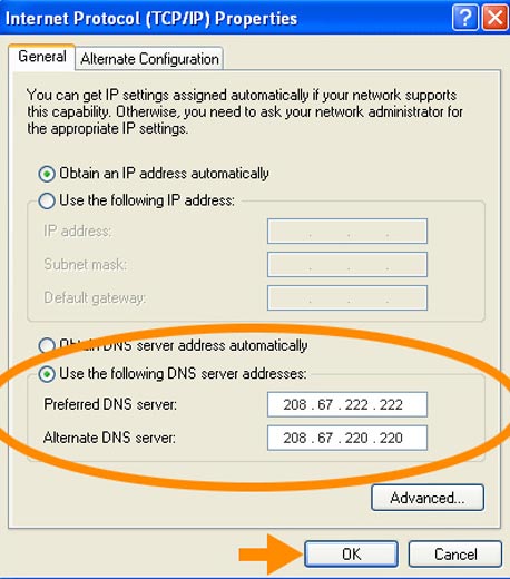 * Son pencerede ise aşağıdaki değişikliği yapın. DNS ayarlarına Yeğlenen DNS sunucusu: 208.67.222.222 ve Diğer DNS Sunucusu bölümüne de 208.67.220.220 olarak girin.