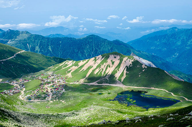 Rize'nin Çamlıhemşin ilçesi sınırlarındaki Kaçkar Koçdüzü Yaylası'nda bulunan çok sayıda göl ve göllerin içindeki yüzen adalar Karadeniz turizmine renk katarken, turizm çeşitliliğini de arttırıyor.