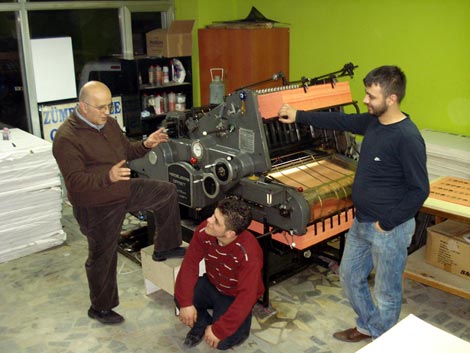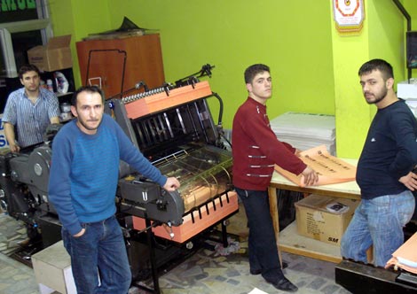 Soldan sağa doğru Makine Arkasında Ömer Turgut ( Kalfa, Ali Delibalta-( Grafiker Tasarımcı ), Orhan Erdem ( Gazete Dağıtım ), Yıldıray Mol ( Baskı Sorumlusu - Ustabaşı )